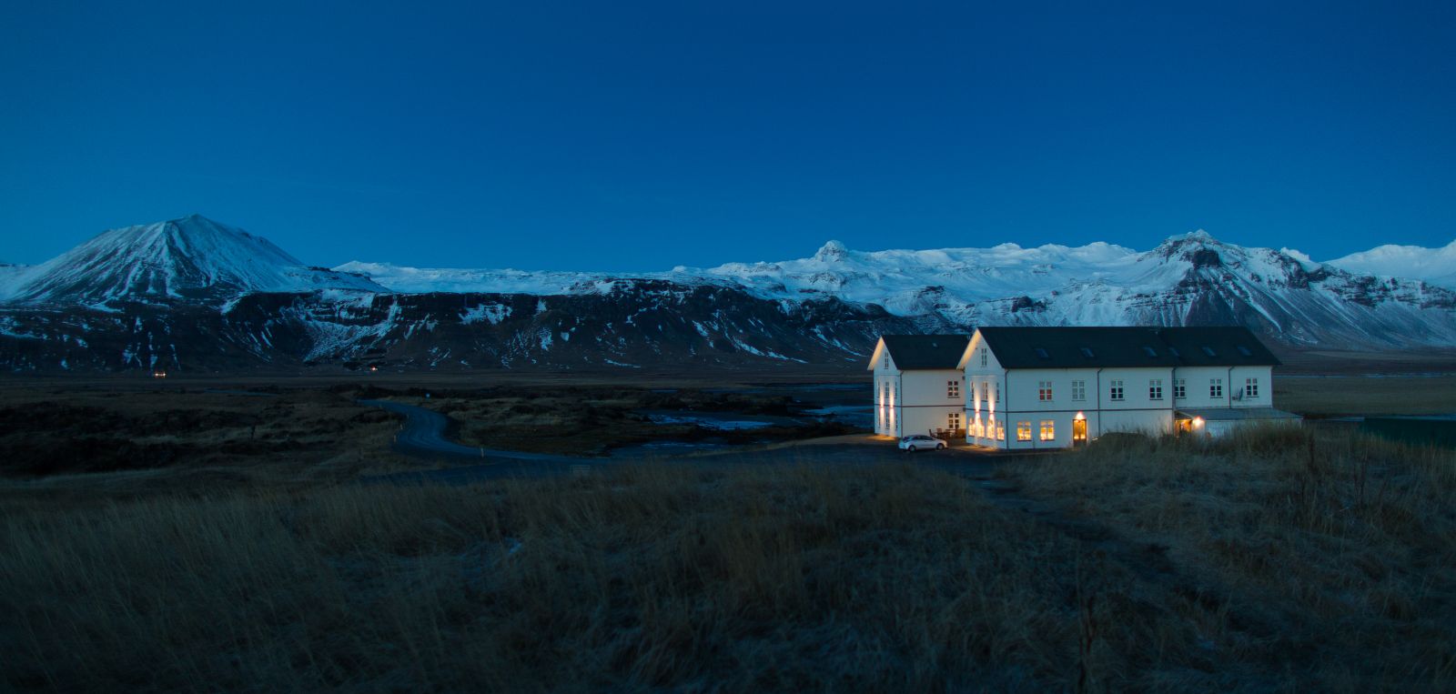 The hotel sits at the edge of The Snaefellsjokull National Park in a lava field on the westernmost tip of the Snaefellsnes peninsula in the western region of Iceland. Due to the hotel´s location, guests have an impressive view of the breathtaking Snaefellsjokull glacier and the Budir-estuary which meanders into the vast Faxafloi-Bay where a number of seals reside.