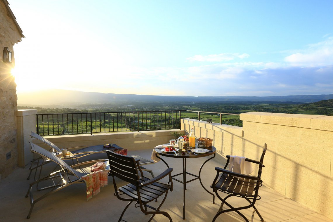 Maison Philibert has a commanding presence on the main village square and with the hotel reception on the ground floor, it provides the initial welcome to Hotel Crillon le Brave. To the east are views of Mont Ventoux and to the west, the village and Rhône valley in the distance. Formerly the home of Romeo Philibert, the deputy mayor for many years, this large house has many memories of village life through the ages.