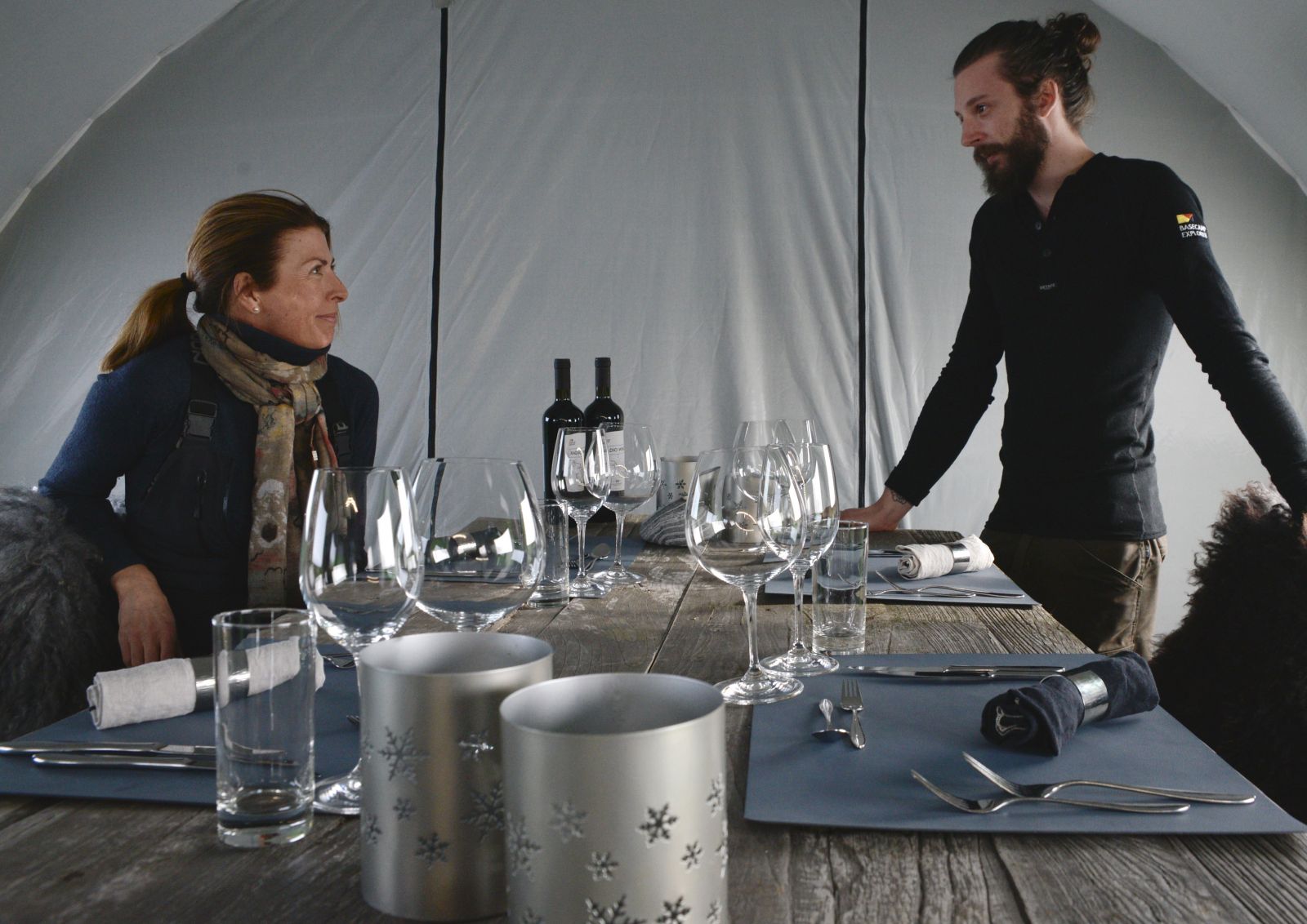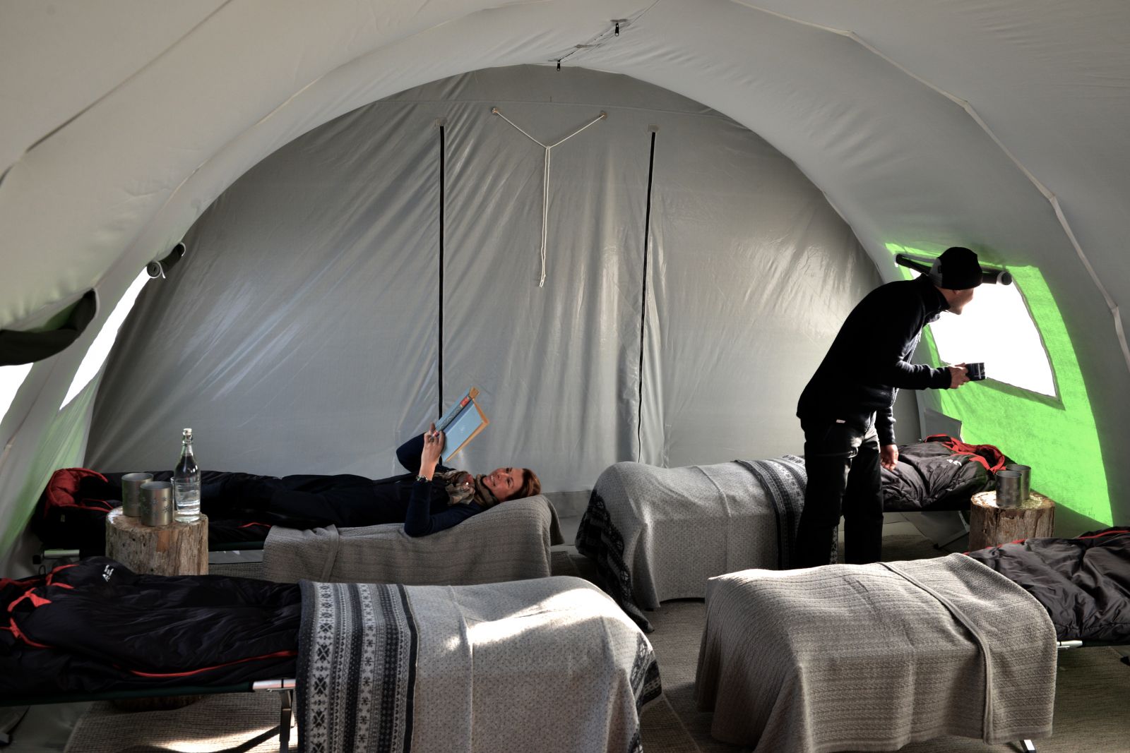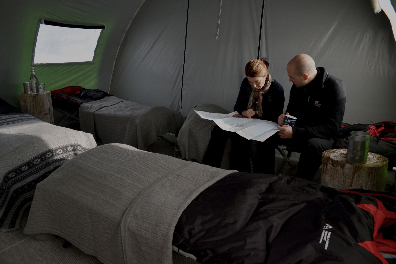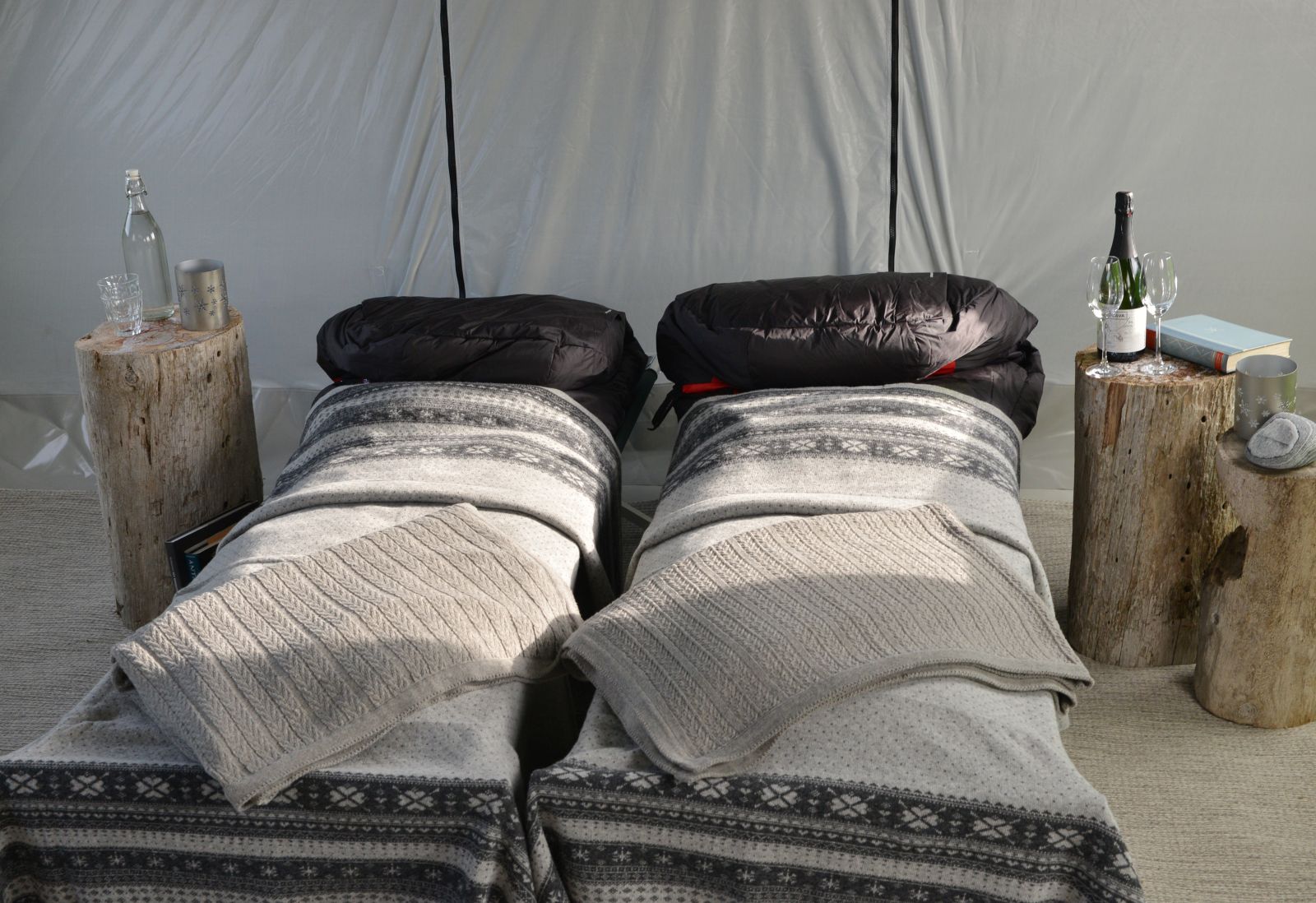 North Pole Camp is a one of a kind Arctic mobile camp. A unique product that offers guests the chance to camp out in luxury and style in some of the world's most breathtaking locations on the island of Spitsbergen. The tents are fully equipped with heating, comfortable camp, beds lined with reindeer furs and the worlds leading expeditions sleeping bags by norwegien Helsport.