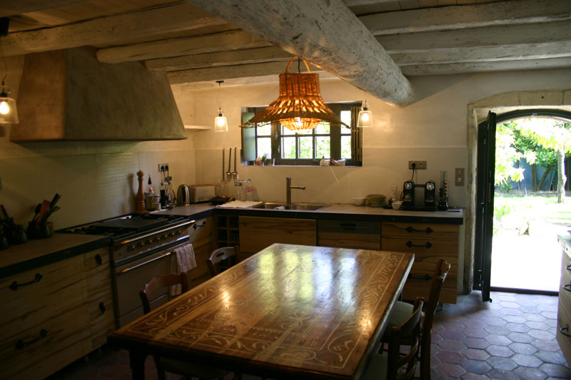 Kitchen with small flat screen TV, dishwasher, large French Lacanche cooker and coffee machine. Access to a small secondary kitchen with additional professional appliances; including blender, deep fryer and microwave.