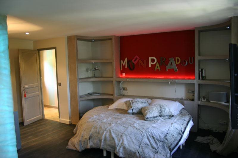 All the rooms have been decorated and furnished in a very colourful and contemporary style, using a mix of unusual Indian articles of furniture and objets d'art, inspired by the 60's. A wonderful sound system throughout the house and gardens enables one to listen to music, whether, having a swim in one of the pools, in the steam room or in the bath. There is even a rainbow shower in one of the en-suite bathrooms, which changes the colour of the water, dependant on your mood...